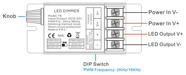 3.PWM dimming frequency is adjustable.The maximum output load power corresponding to different PWM frequencies is different. Please do not overload it.